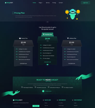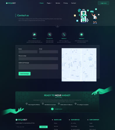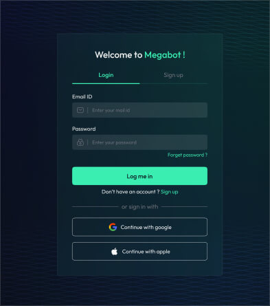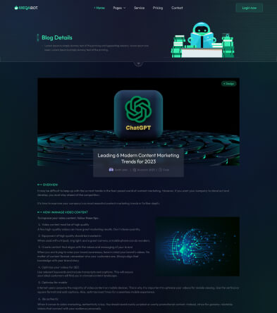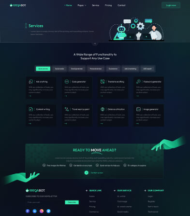 Megabot is a template for an AI chatbot landing page with conversing user interface pages.